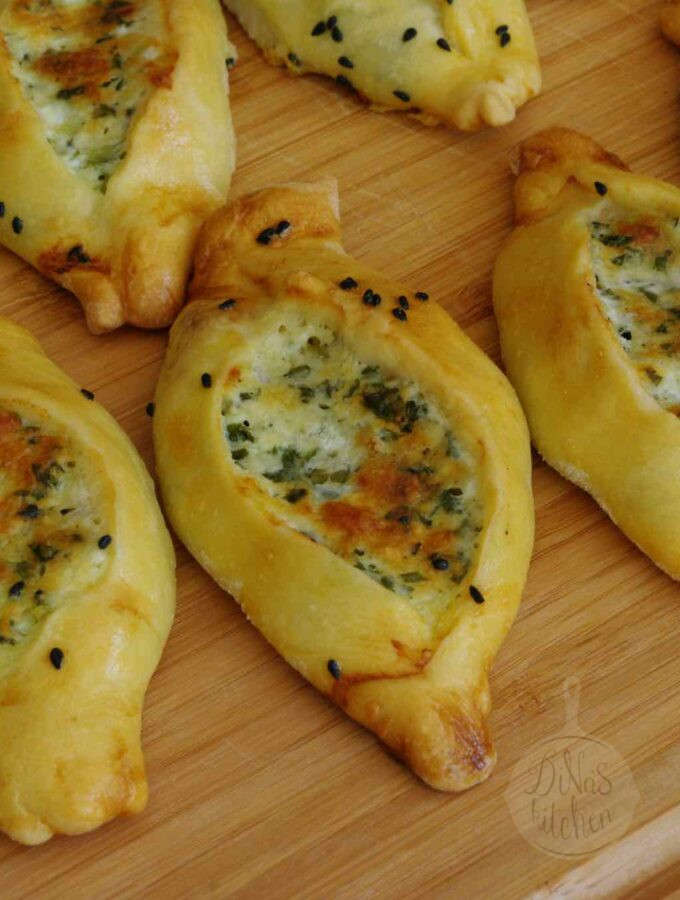 Those savoury cheese pies are simply scrumptious and easy to make. The dough is soft and malleable, and the filling is creamy and stretchy. I usually prepare them for breakfast or serve them as a starter with Lebanese Mezze during lunches or dinners. In this recipe I am using the same recipe of “Mankoushet Abou-Kamel”…