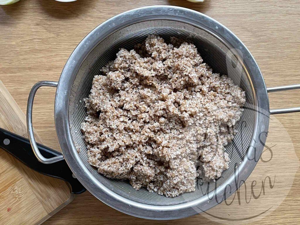 Making your first kibbeh could be a daunting task, though. My recipe is enough for a large baking pan, and the amount is enough for beginners to start taking the leap into making kibbeh. Once you get confident, you could easily double the recipe to make an extra pan to store in your freezer, or to make a different kibbeh dish. I have posted for you the different steps in photos below, to help you visualize the instructions in the recipe.