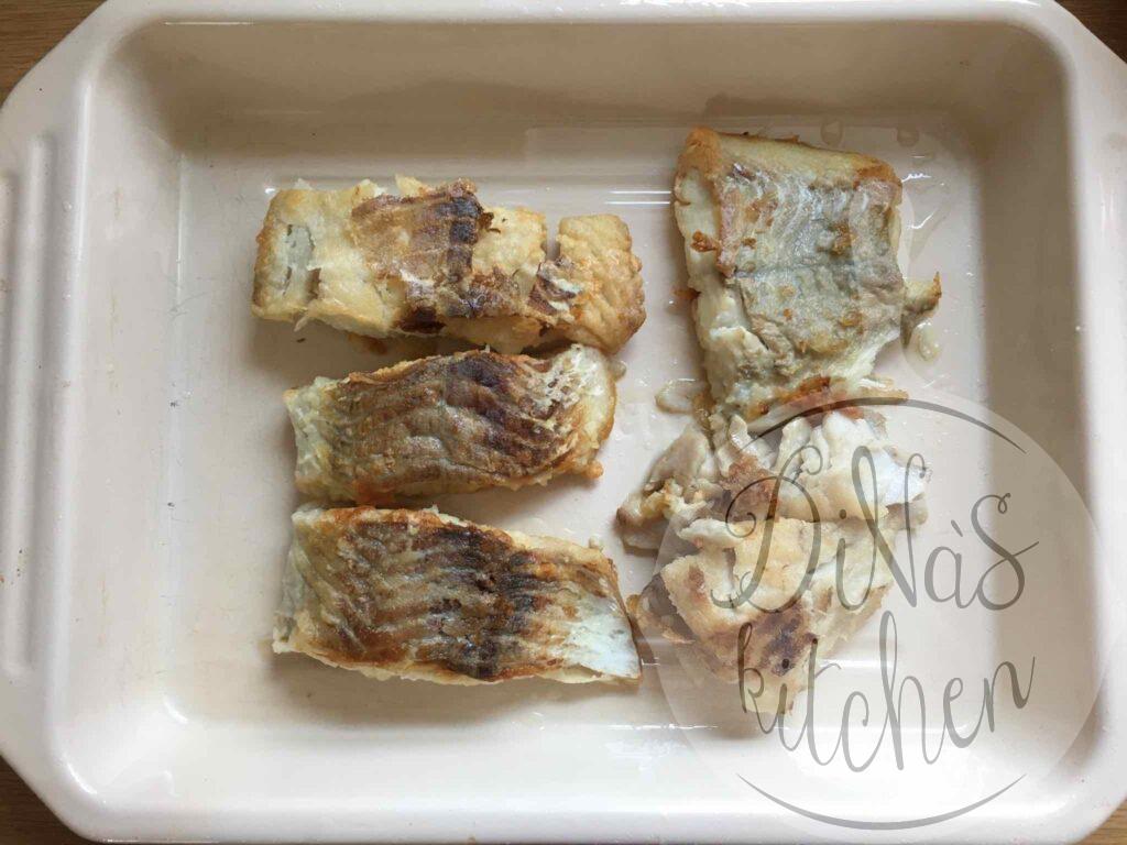 However, any firm, white-fleshed fish that suits your taste buds would go for this recipe. You wouldn’t go wrong with cod (if you like milder flavours), haddock (if you like it more flavourful), red snapper (for its sweet-nutty flavour) or coalfish (it’s an excellent, inexpensive fish).