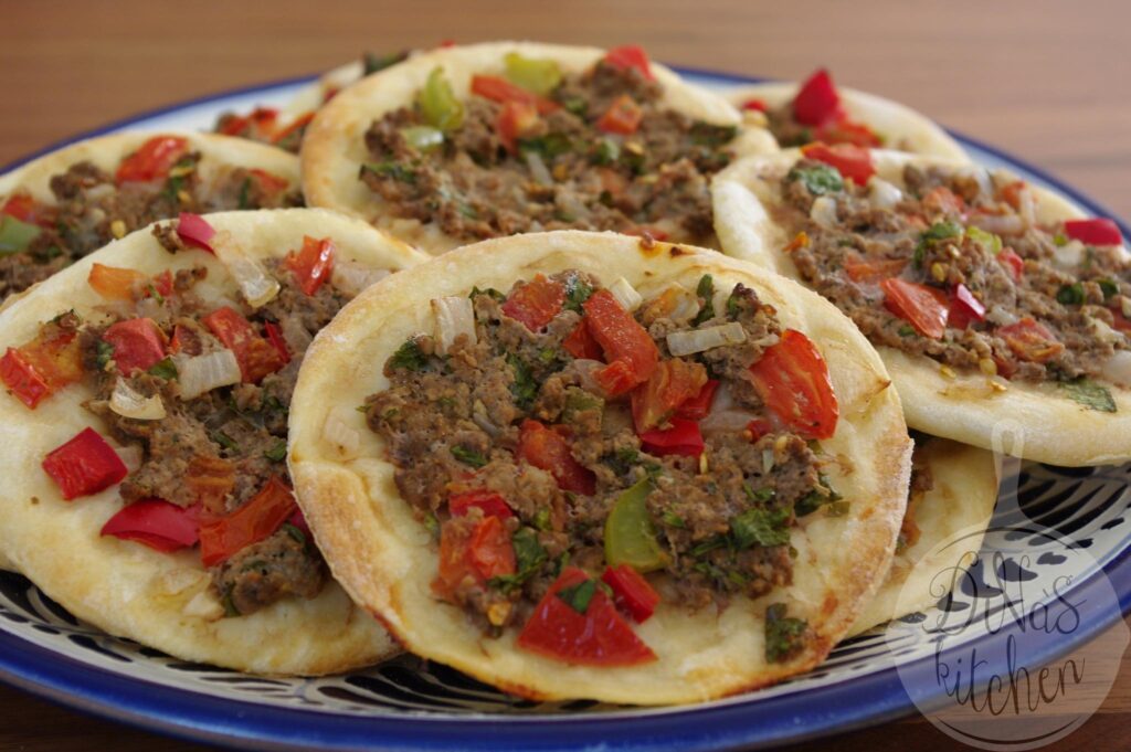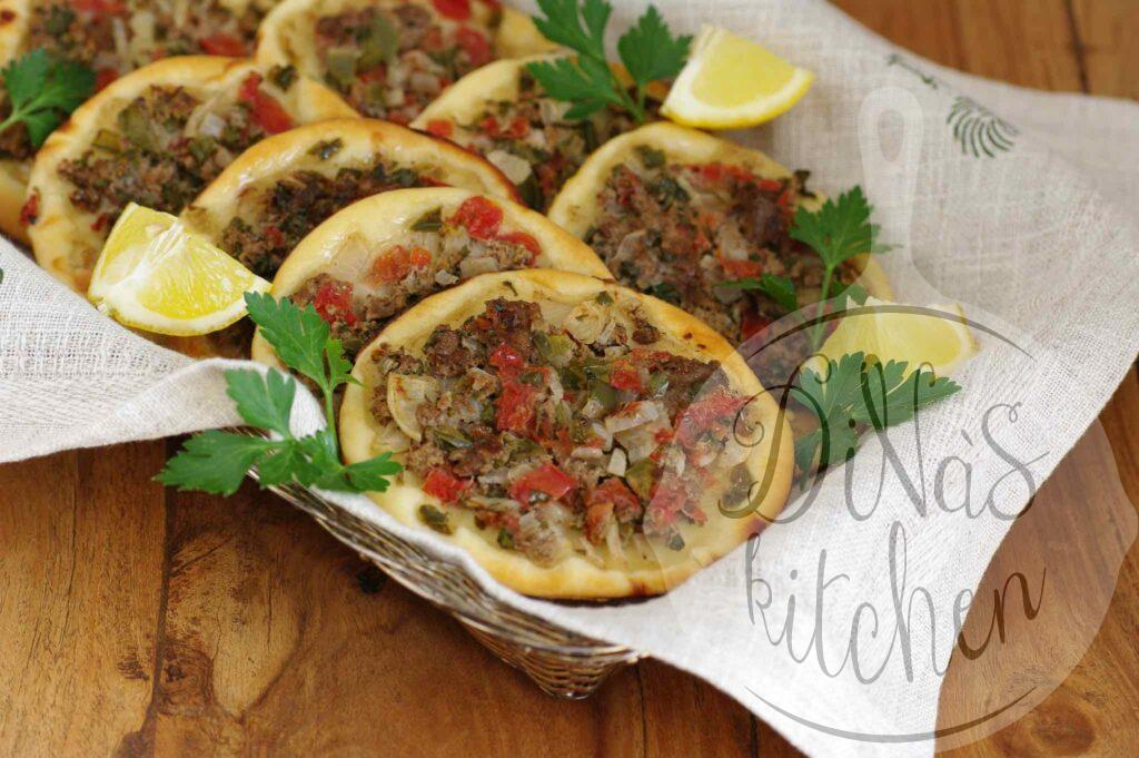 This flatbread “Armenian style” is truly addictive. I love the crispy crust and the juicy topping. In bakeries lahm bi ajeen has the size of a medium pizza. It is usually rolled with pickles inside and served as a sandwich. I like to make smaller lahm bi ajeen to serve as little appetizers.