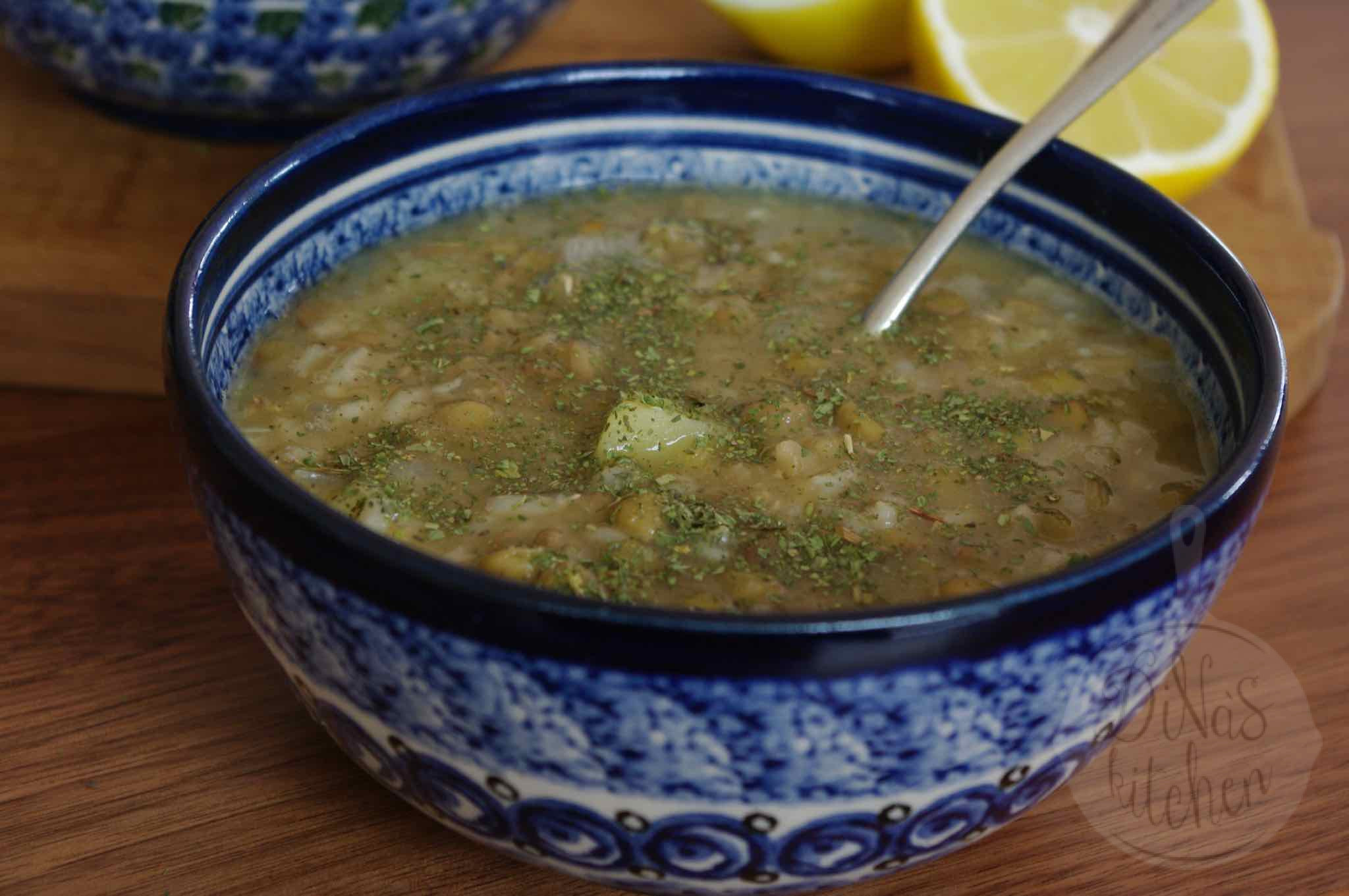 I have been calling this soup adas bi hamed for years now although no Swiss Chard is involved in it like in the original recipe. This adaptation is straightforward without having to clean and wash any greens. All you need is green lentils, rice, potatoes, onions, garlic and lemon juice- ingredients being usually available in a middle eastern and Lebanese pantry.