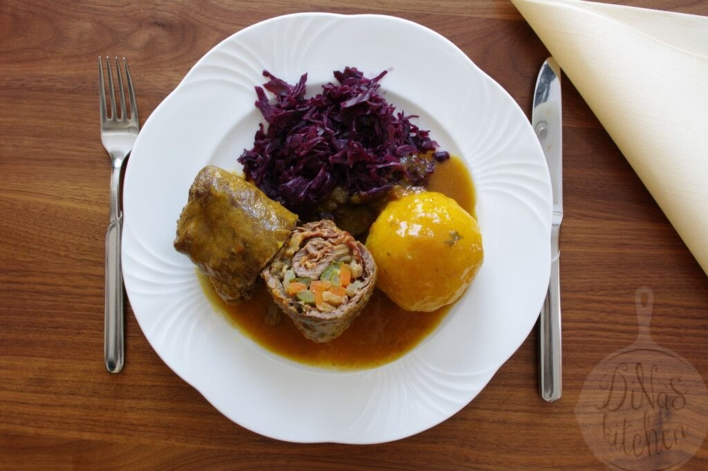 Served in the flavourful creamy gravy with potato dumplings or mashed potatoes, and red cabbage, those beef rolls are simply delicious! I am quite convinced that you don’t desire to miss that culinary experience in your life.
