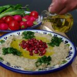 What is a nice spread of mezze without mtabbal batinjan? Also known as baba ghannouj it is next best favourite after hommos bi tahini in every Arabic restaurant around the world. Everybody loves it! I can’t resist the sight of this beautiful dish topped with pomegranate seeds without digging in immediately, mostly by scooping it…