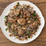 In this recipe tender chicken pieces are arranged on Lebanese hashweh, a rice-meat mixture, full of Middle Eastern aromas, and adorned with golden toasted nuts. The taste and presentation glorify it into a star dish on special occasions. There is no rule in this world, however, that prevents it from appearing on a weekly menu….