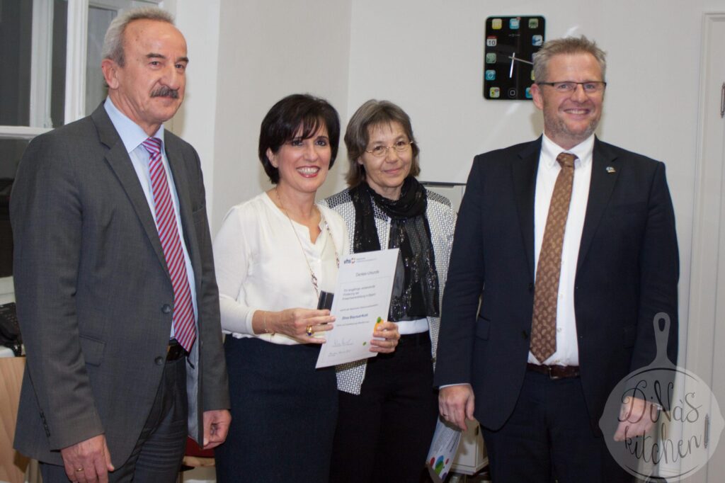 In November 2015 Dina celebrates the twentieth Anniversary of her cooking classes at the Volkshochschule in Schwandorf. In a festive ceremony organized by the school, Dina was honoured for her accomplishment and commitment throughout the years. A private party was held afterwards attended by the town Mayor Andreas Feller, the school Director Franz Xaver Huber, school Manager Barbara Genzken-Schindler and her loyal students. Dina and a few cooking enthusiasts from her cooking courses had prepared selected dishes and sweets from large repertoire.